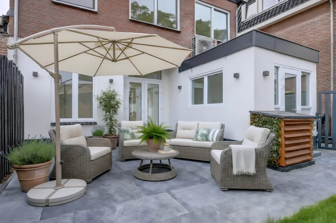 Met een veranda, meerdere zitplekken en veel groen is dit een waar privé-paradijs. Via een eigen achterom met ruime opening voor bakfietsen kom je bij de vrijstaande stenen berging (ca. 32 m²), perfect als werkplaats, atelier of extra opslag.
