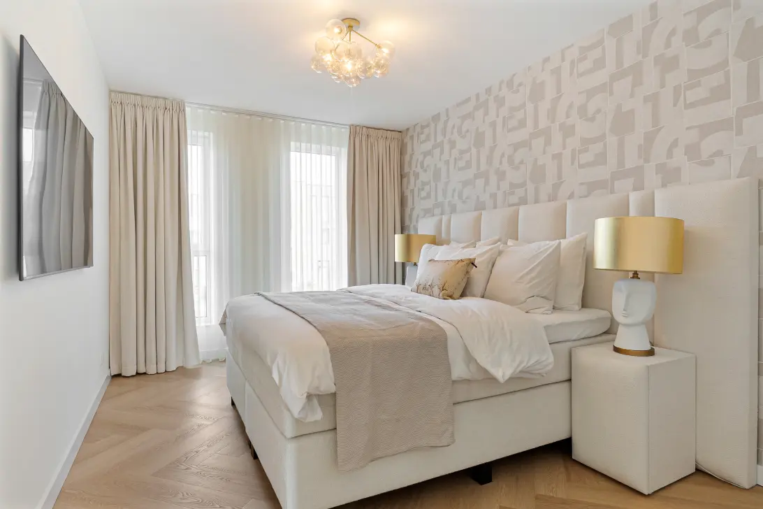 Het appartement beschikt over vier volwaardige slaapkamers. De masterbedroom biedt volop ruimte en comfort, terwijl de andere drie kamers uitstekend kunnen dienen als kinderkamer, thuiskantoor, logeerkamer of als walk-inn. De moderne badkamer is voorzien van een ruime inloop (regen)douche met luxe glazen deur, een ligbad, een wastafelmeubel met spiegelkast en een wandradiator.