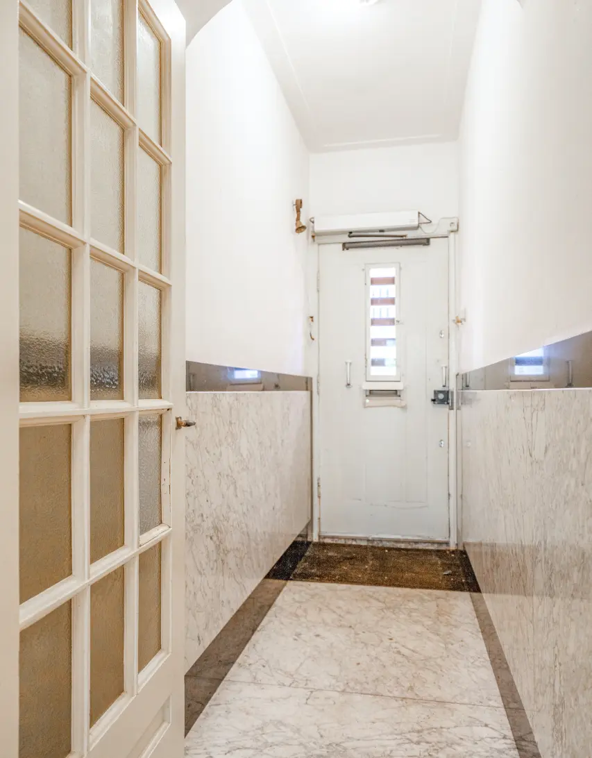 Via je eigen entree kom je binnen in een ruime hal, die direct toegang geeft tot alle vertrekken en waar ook het separate toilet is gesitueerd.