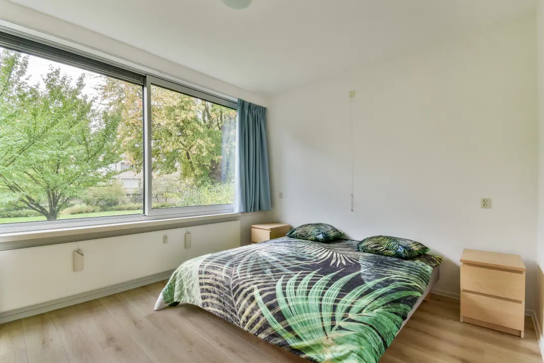 Het appartement beschikt over twee slaapkamers. De hoofdslaapkamer ligt aan de achterzijde en grenst aan het zonnige balkon met uitzicht over de groene binnentuinen. De tweede slaapkamer bevindt zich aan de voorzijde en beschikt over een eigen balkon.