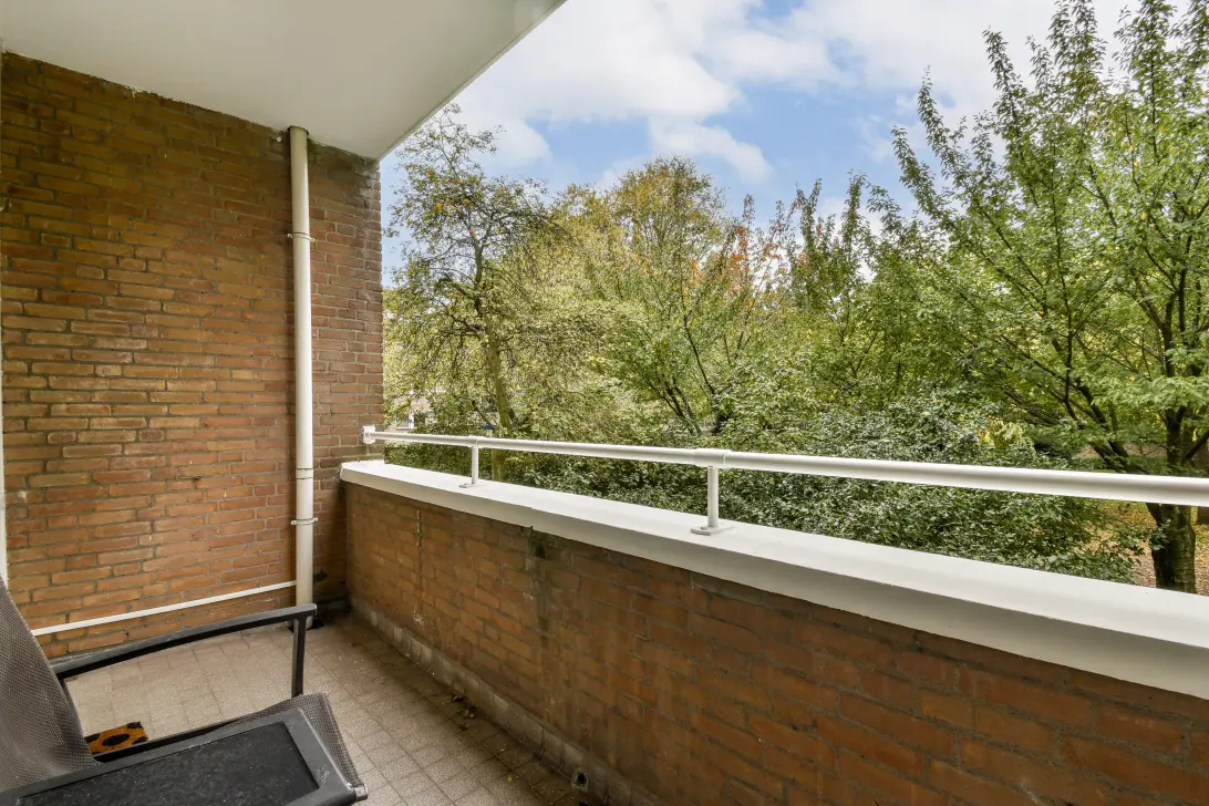 De open keuken is voorzien van inbouwapparatuur, een grote oven en gasfornuis. De doorzonwoonkamer is licht en ruim en biedt aan de achterzijde toegang tot het balkon op het westen met uitzicht over de groene tuinen. De schuiframen zijn recent vervangen door HR++-glas, wat heeft bijgedragen aan lagere stookkosten en een betere energieprestatie.