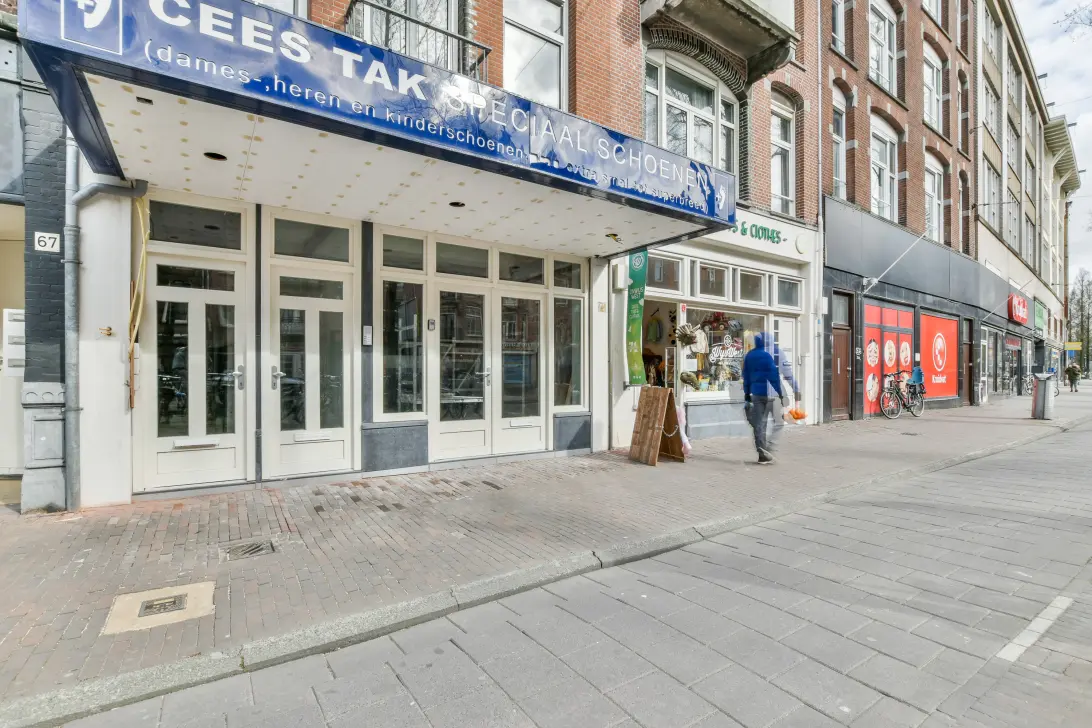 De bedrijfsruimte ligt aan een drukke doorgaande straat tussen de De Clercqstraat en het Kwakersplein in.