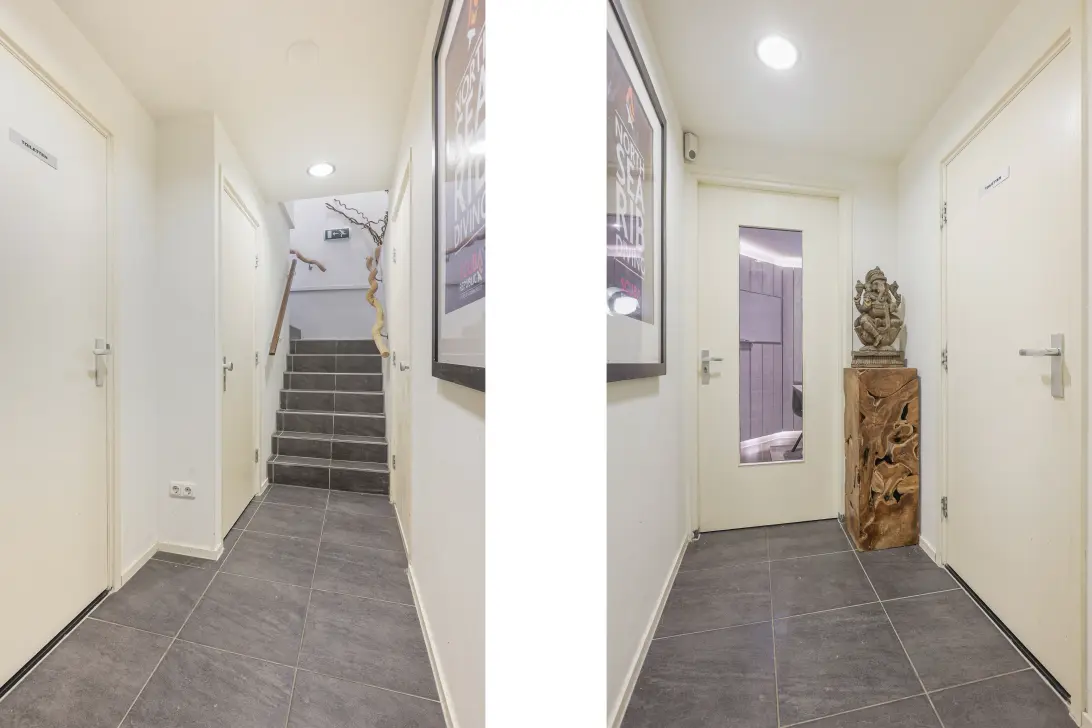 Dankzij de unieke uitbouw beschikt dit pand over een royaal oppervlak, perfect voor zowel een showroom van sportartikelen als voor het aanbieden van lessen met de zee als decor. De achthoekige vorm geeft een dynamische uitstraling en samen met het privéterras en de eigen parkeermogelijkheden, biedt het alles wat een moderne ondernemer nodig heeft.