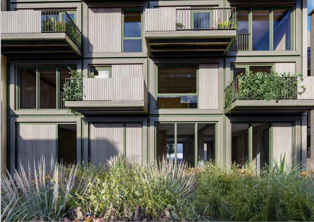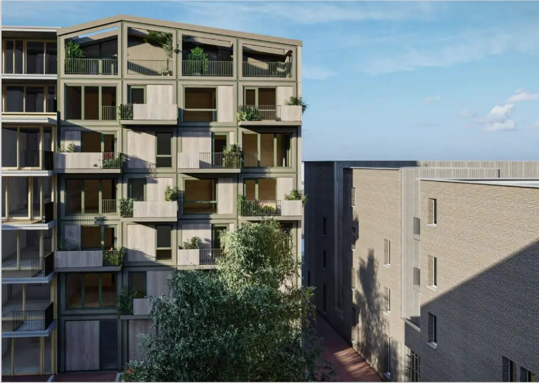 Het gebouw ‘Timberhouse’ is wederom een uniek en volledig uit hout bestaand gebouw dat speciaal ontworpen is voor Amsterdam Noord. Het is gelegen in de nieuwe stadswijk Overhoeks. Deze wijk ligt tussen het IJ en de Van der Pekbuurt in Amsterdam Noord, vlak achter EYE Filmmuseum. Dit gebied is erg in ontwikkeling waar een mooie mix zal ontstaan tussen wonen, werken en ontspanning vlak bij het centrum van Amsterdam. Tevens beschikt het gebouw over een (prive) binnentuin waar alleen de bewoners en huurders gebruik van kunnen maken.