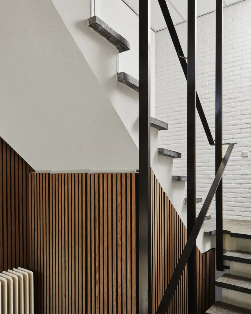 De ruimte is verdeeld over meerdere aparte kamers en halfopen werkruimten. Aanwezige voorzieningen: