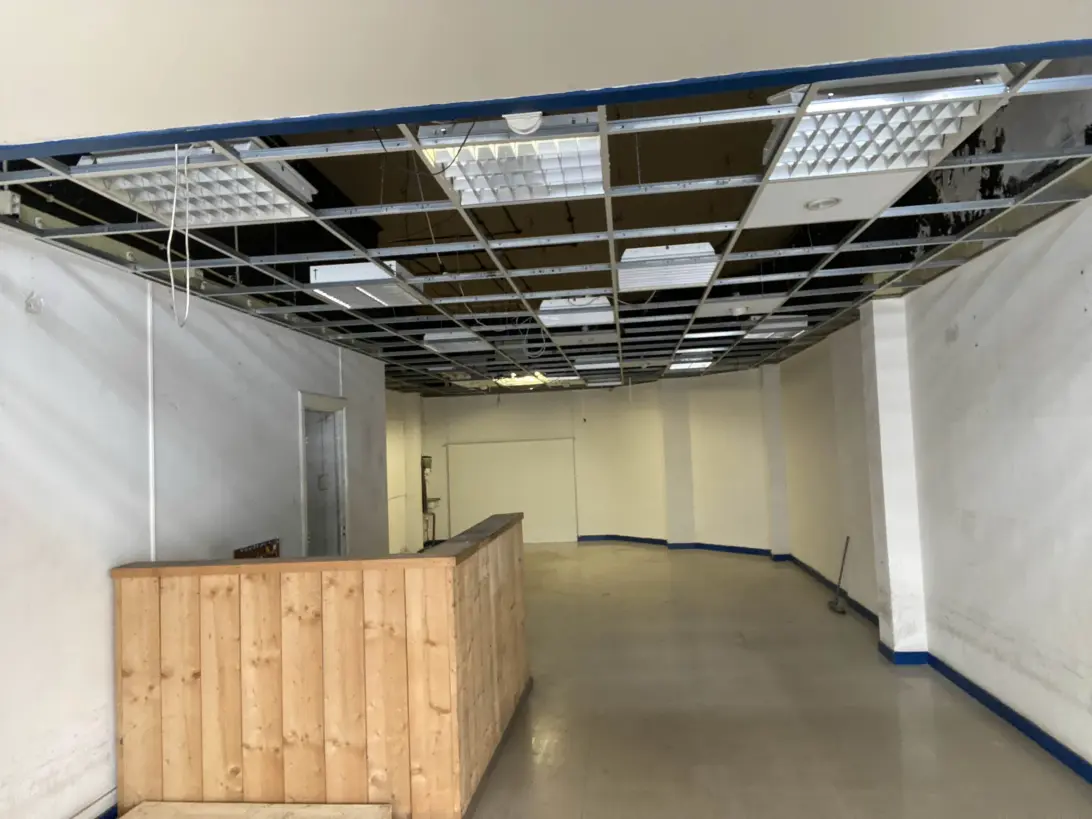 De begane grond is bovenal hoog een naar achteren breed uitlopende open ruimte van ruim 65m². Er is verder een toilet, meterkast en een wastafel. De winkelruimte heeft tegen de voorpui een transparant rolluik.