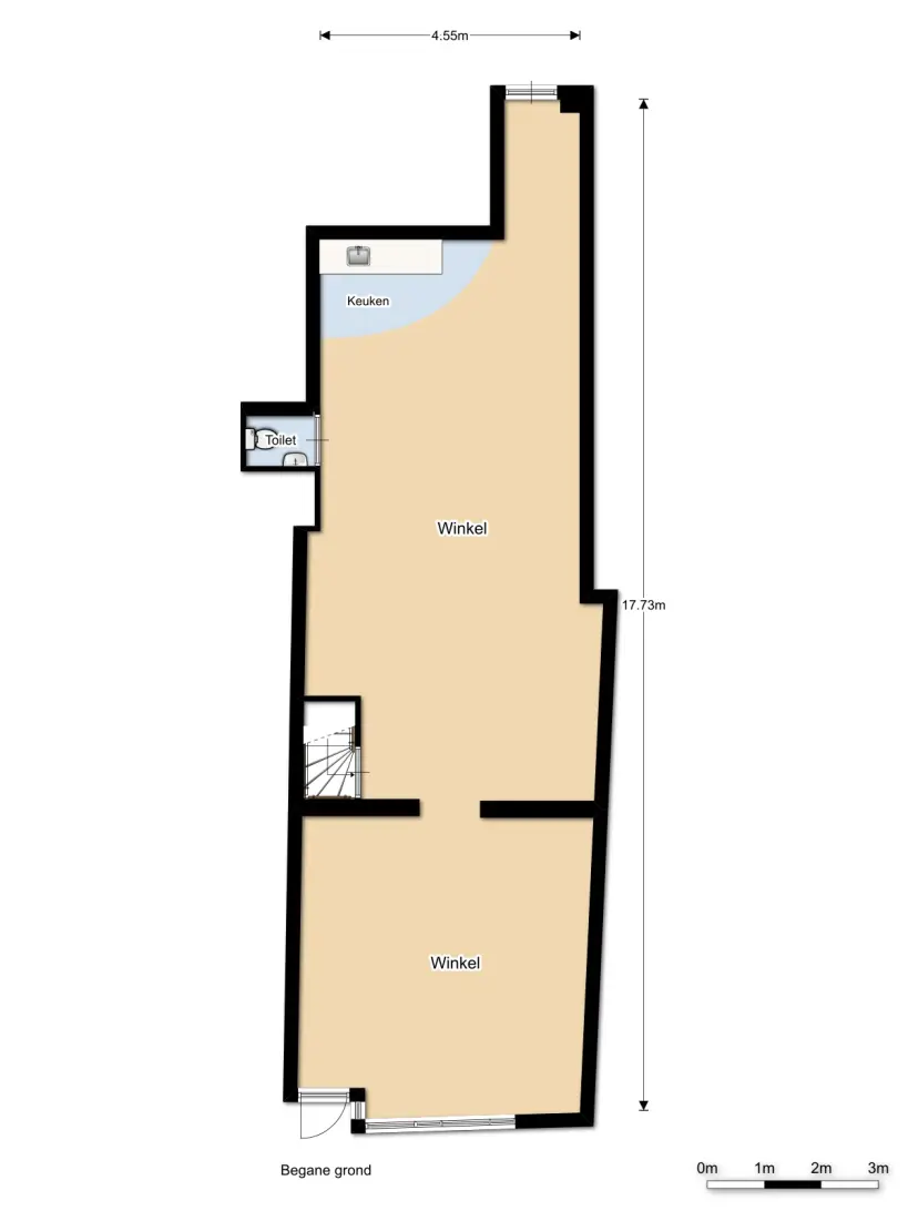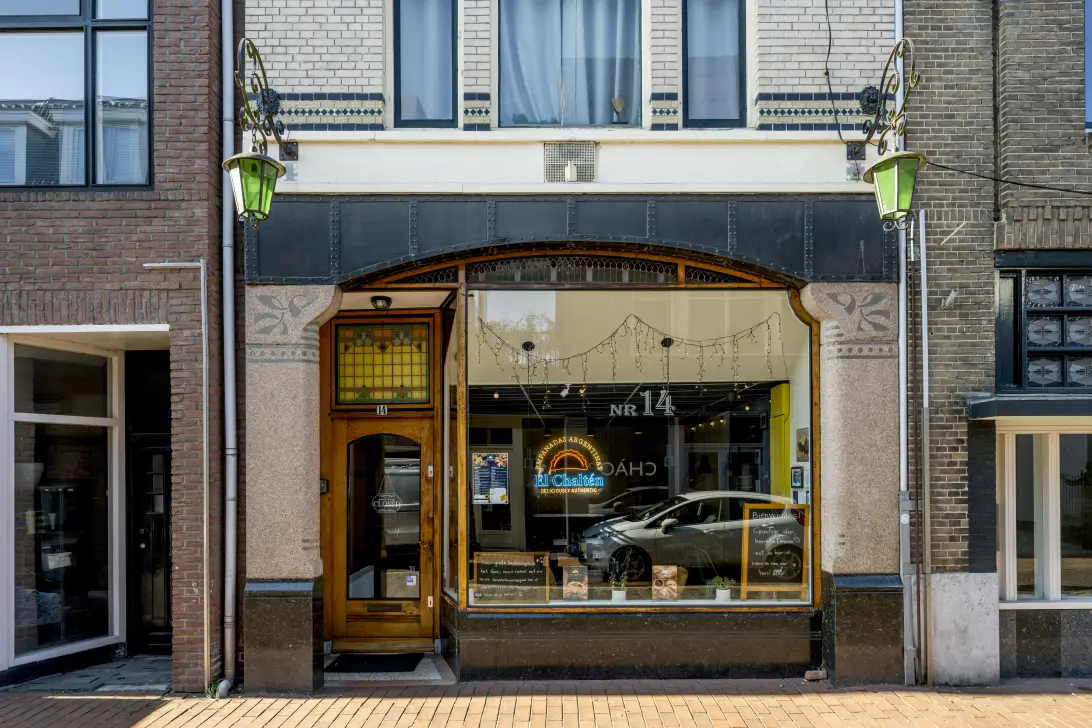 De winkel heeft een eigen entree met een frontbreedte van ongeveer 5 meter. Het totale oppervlak van de winkel is ongeveer 103 m2 (BVO) en heeft een eigen meterkast, kelder, keuken, toilet, cv-installatie, alarminstallatie, rolluiken binnenzijde en een achteringang.