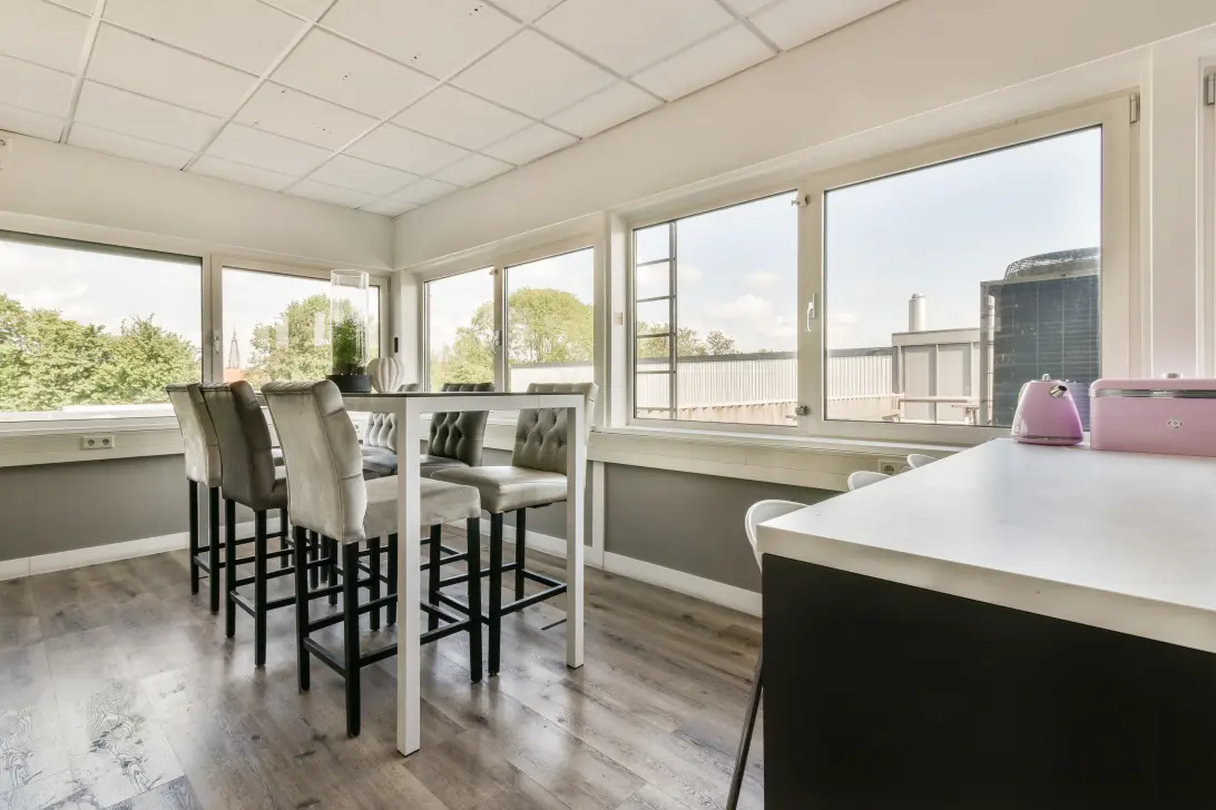 De units zijn voorzien van allerlei voorzieningen zoals glazen scheidingswanden, pantry, houten vloer etcetera.