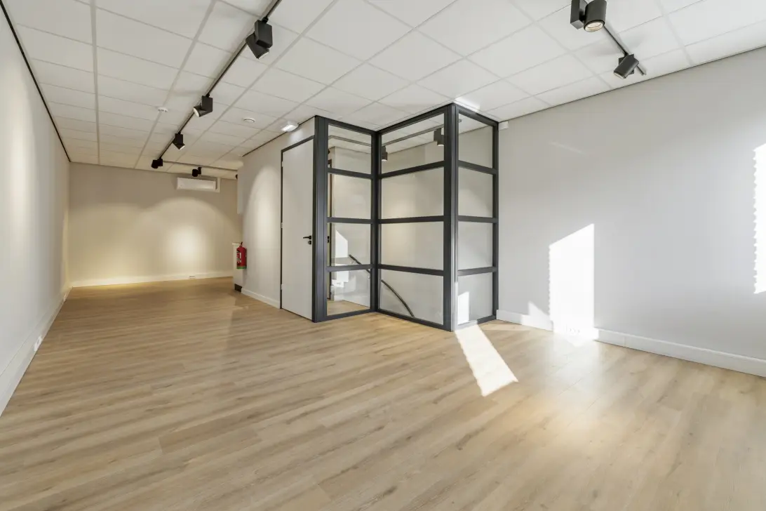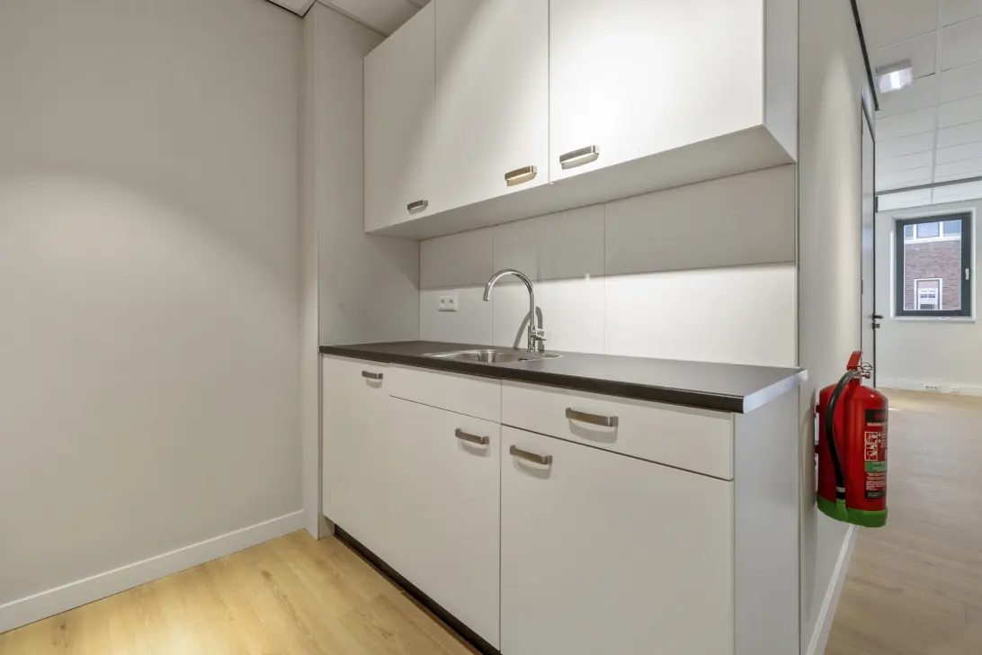 Deze kantoorruimte is onder andere voorzien van een laminaatvloer, fraaie lichtarmaturen, een alarminstallatie en een laadpaal. Verder is er een toilet met fontein en een kitchenette aanwezig. Ook is er een voorbereiding getroffen voor aansluiten van het glasvezel en het plaatsen van zonnepanelen.