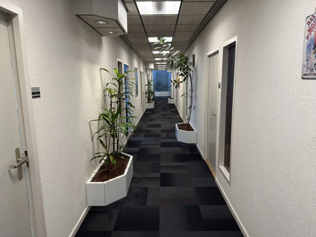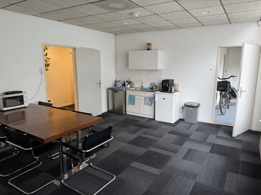 De kantoorruimte is voorzien van Vloerbedekking, systeemplafond, toilet en pantry. de magazijnruimte is voorzien van een overhemddeur.