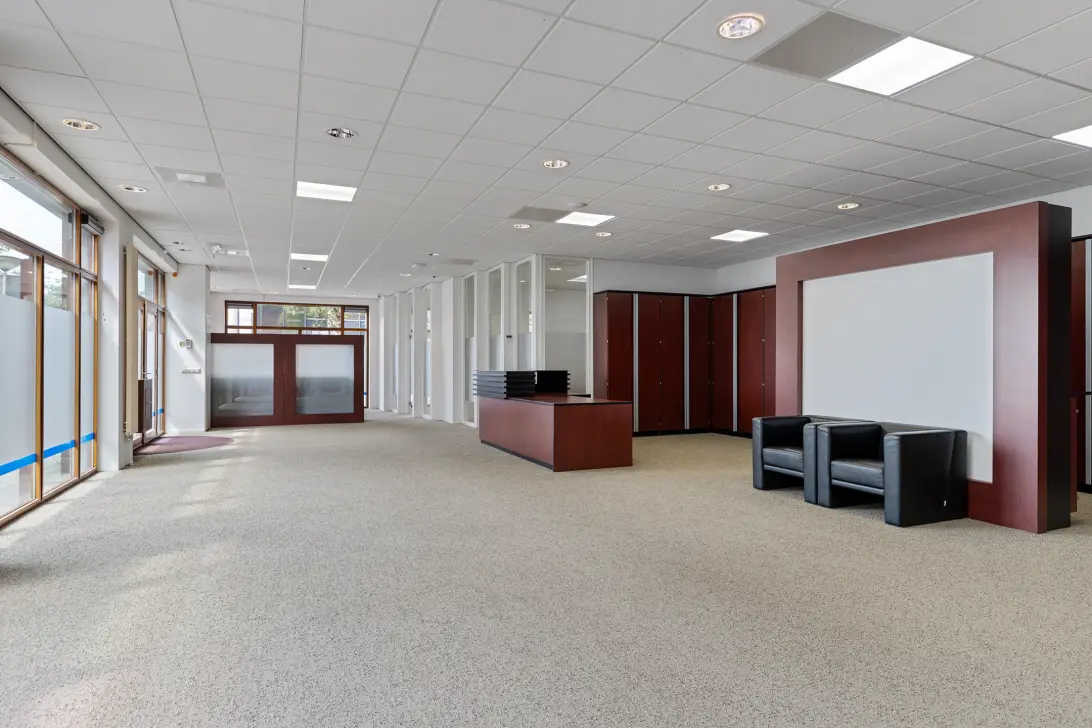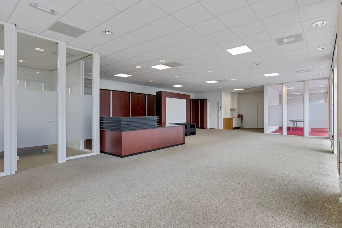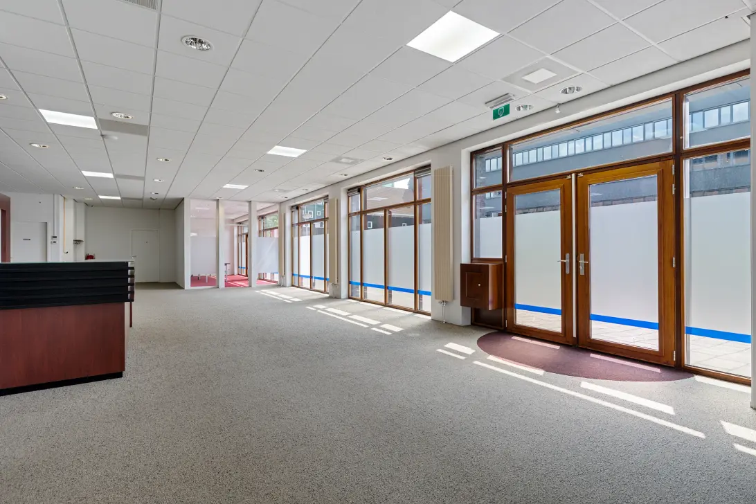 Naast de goede bereikbaarheid bevindt de ruimte zich op de begane grond en beschikt deze over een royale glazen pui, wat zorgt voor maximale zichtbaarheid en een lichte werkomgeving. Het kantoor is ingedeeld met verschillende spreek- en vergaderruimtes.