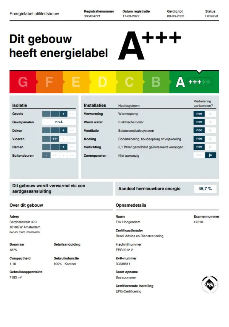 In 2025 is de entree gerenoveerd worden zodat deze weer voldoet aan de nieuwe eisen van deze tijd. Het object beschikt over energielabel A+++ . Het object heeft een goede plafondhoogte, grote raampartijen en een prachtig uitzicht.