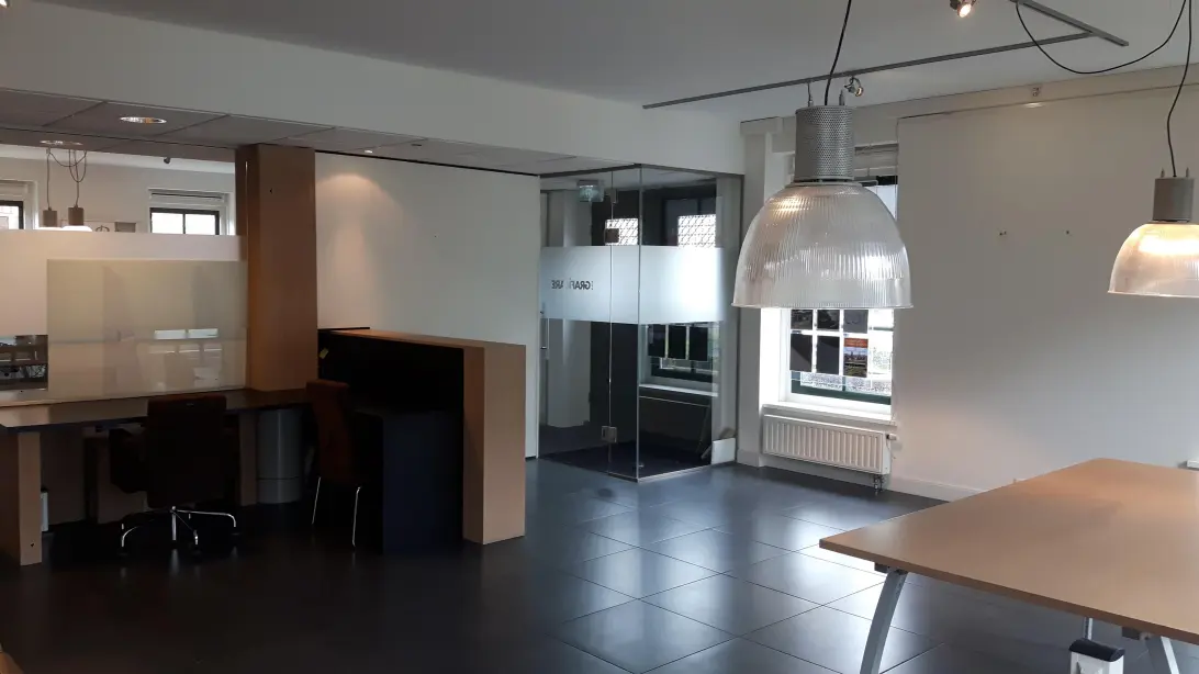 De kantoorruimte wordt gebruiksklaar opgeleverd en heeft een moderne en representatieve uitstraling. Het voorste gedeelte is voorzien van vele ramen en daardoor lekker licht. Tevens is dit gedeelte voorzien van een prachtige vaste kastenwand en (ontvangst)balie met werkplaats. Het achterste deel bevat twee werkkamers waarvan 1 met eigen entree vanaf de achterzijde van het pand.
