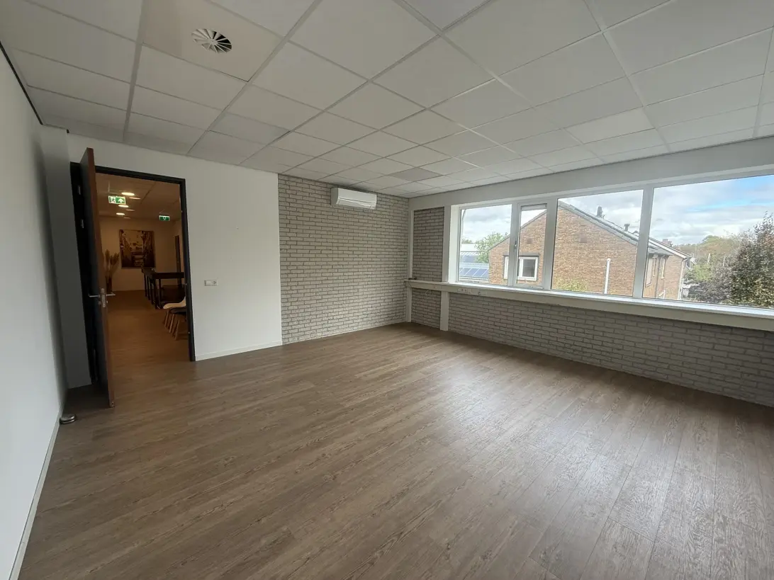 De praktijkruimte zelf heeft een leuke hoekligging met veel daglicht, is voorzien van elektrische zonwering, een airconditioning en een mechanische ventilatiesysteem.