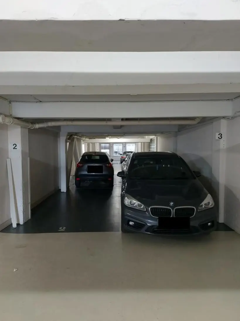 Het betreft een overdekte parkeerplaats in een parkeergarage.