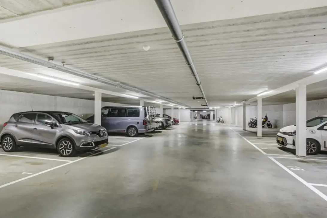 Parkeerplaats is genummerd en is toegankelijk via een handzender en afgesloten met elektronische deuren.