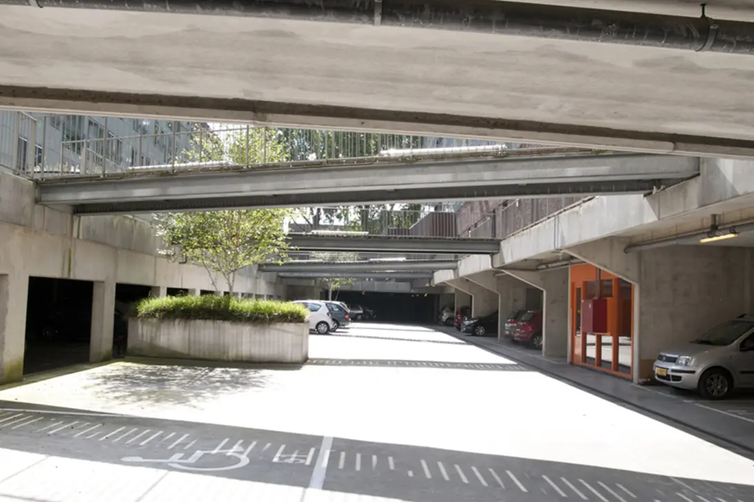 Toegang (24/7) alleen via persoonlijke afstandsbediening. Camerabewaking. Op straat betaald parkeren tot 23.59 uur € 3,90 p/u.