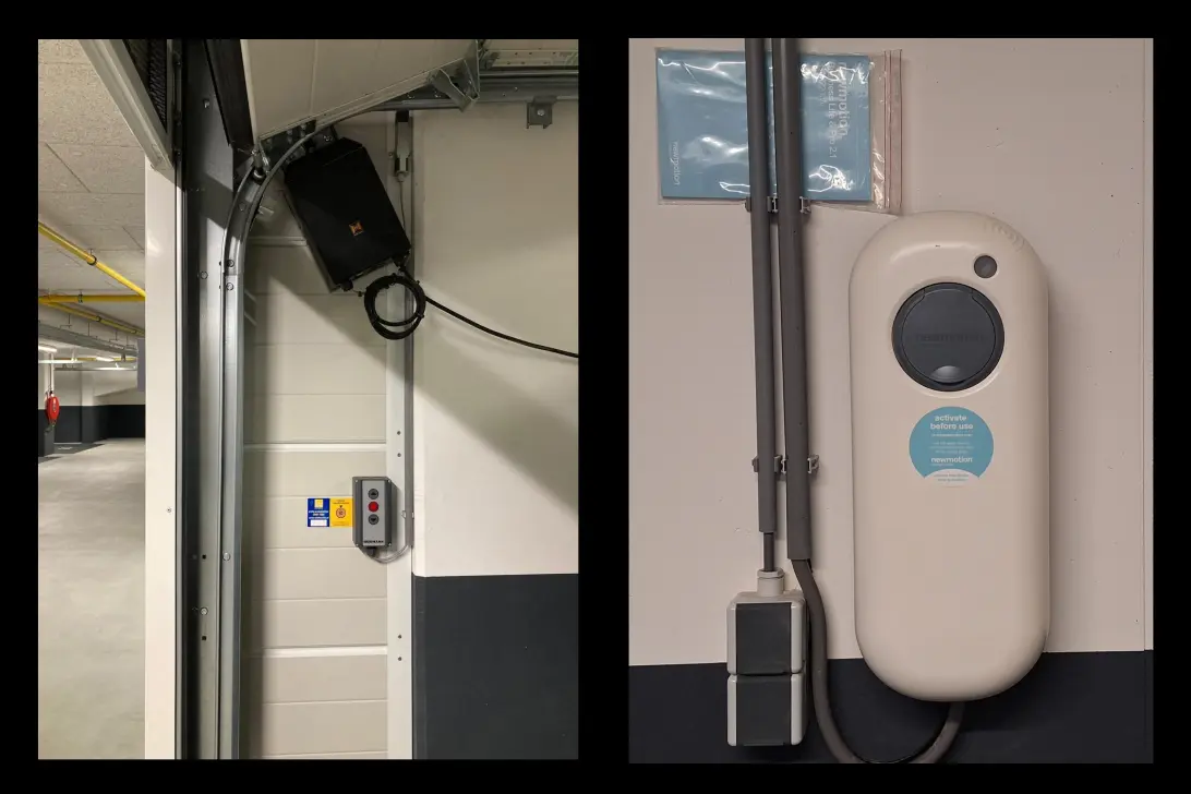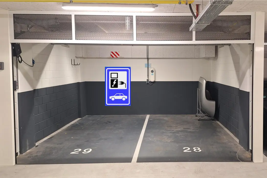 Toegang van de garage en de box werkt via een handzender en elektrische deur. In de box is een oplaatpunt voor elektrische auto's beschikbaar.