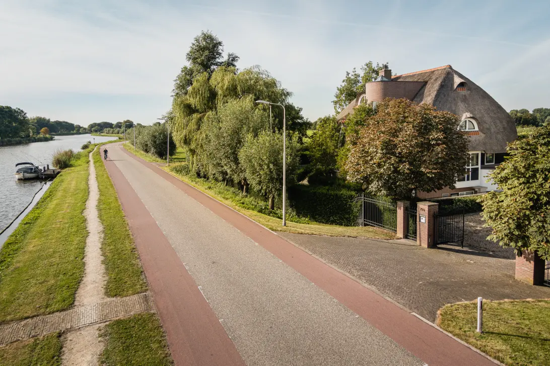 BUYTENPLAETS AMSTELDYCK | A remarkably complete and beautifully designed farmhouse villa set in a unique setting on a large plot of land with the ambiance of a mature private park. Located along the Amstel River in a green environment. In this part of the Amstel, the river widens, offering beautiful sightlines with its bends.