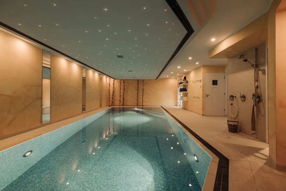 In total, there are 10 rooms, four bathrooms, a wine cellar, gym, wellness area (complete with an indoor swimming pool), and an office with its own separate entrance.