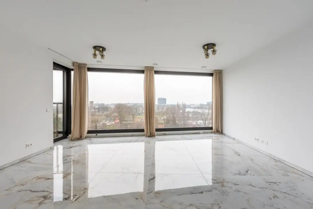 The balcony extends the living area and creates a unique indoor-outdoor feel, perfect for enjoying the views of the IJ and the city.