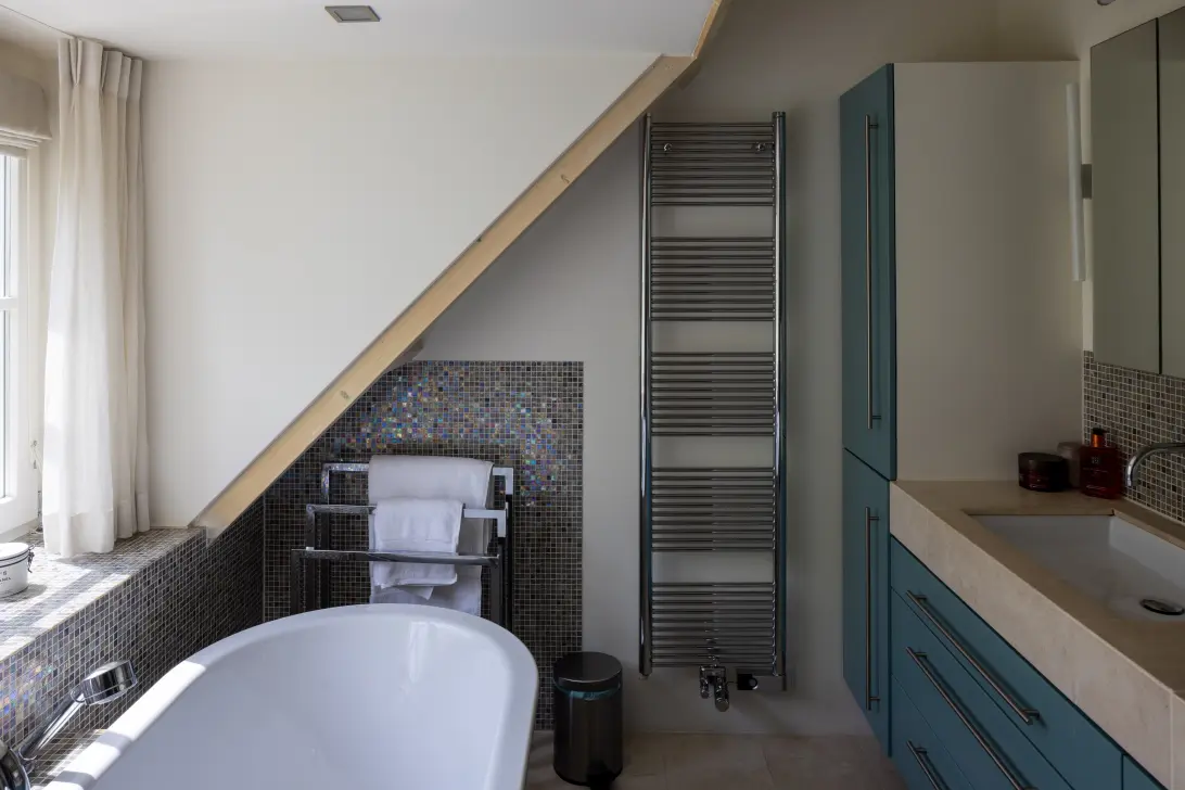 What immediately stands out is the attractive, spacious kitchen and living room with fireplace – the beating heart of the house. Cosiness and functionality come together here. Cooking while looking out over the water, dining with the whole family or having drinks with friends: it's all possible. The living areas are light and spacious, with large windows that embrace the view and bring the outdoors inside.
