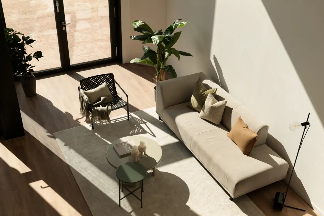 Stijlvolle appartementen met de entree op de begane grond. Hier bevindt zich ook het woongedeelte met open keuken, een toilet en een handige berging. Het extra hoge plafond creëert een gevoel van vrijheid en maakt de woning extra ruimtelijk en luxe.