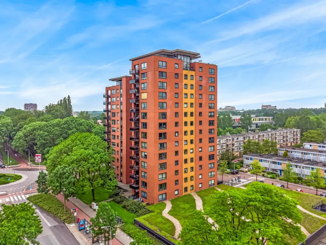 Op de hoek van de Van der Hooplaan en de Sportlaan ligt een markant appartementencomplex met o.a. een ruim 3-kamerhoekappartement (oppervlakte circa 107 m2) met balkon Gelegen op de 11e verdieping heeft u prachtig uitzicht over Amstelveen. In de afgesloten onderbouw bevindt zich een eigen (fietsen)berging en een eigen parkeerplaats.