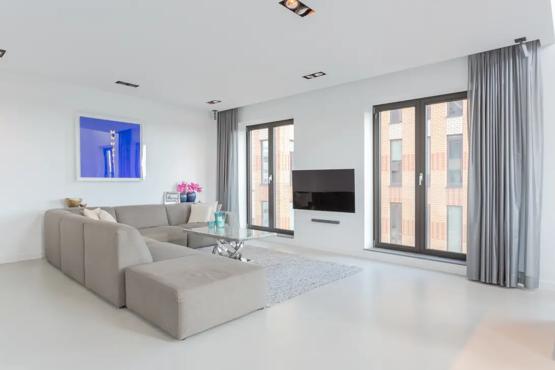 Dit appartement onderscheidt zich door zijn hoge afwerkingsniveau, royale indeling en overvloed aan licht door zijn enorme raampartijen en geweldige vide. De fraaie trap in de woonkamer is met recht een eye-catcher. De woning beschikt over drie slaapkamers en twee geweldige badkamers met onder andere Vola kranen ideaal voor wie comfortabel en representatief wil wonen, alleen, samen of met zijn gezin. De op maat gemaakte verlichting is dim-to-warm LED verlichting aangesloten op een GIRA domoticasysteem. Hiermee wordt ook de gordijnen en de RGBW led infra mee bedient. Zodoende is voor elk moment een unieke sfeer te creëren.