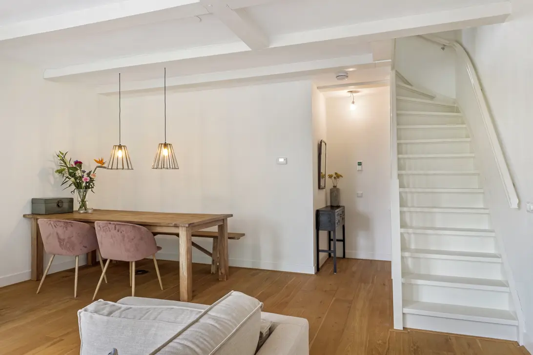 Via uw eigen entree op de tweede verdieping komt u in het appartement. De trap leidt naar de derde verdieping, waar de lichte woonkamer met sfeervolle uitstraling is gesitueerd. Een vaste trap brengt u naar de vierde verdieping. Hier vindt u een separaat toilet, een praktische wasruimte, de moderne badkamer en een van de slaapkamers. Op deze etage bevindt zich ook de woonkeuken, die van alle gemakken is voorzien dankzij diverse inbouwapparatuur. Vanuit de keuken is er direct toegang tot het zonnige terras. Een heerlijke plek om buiten te zitten, midden in de stad.