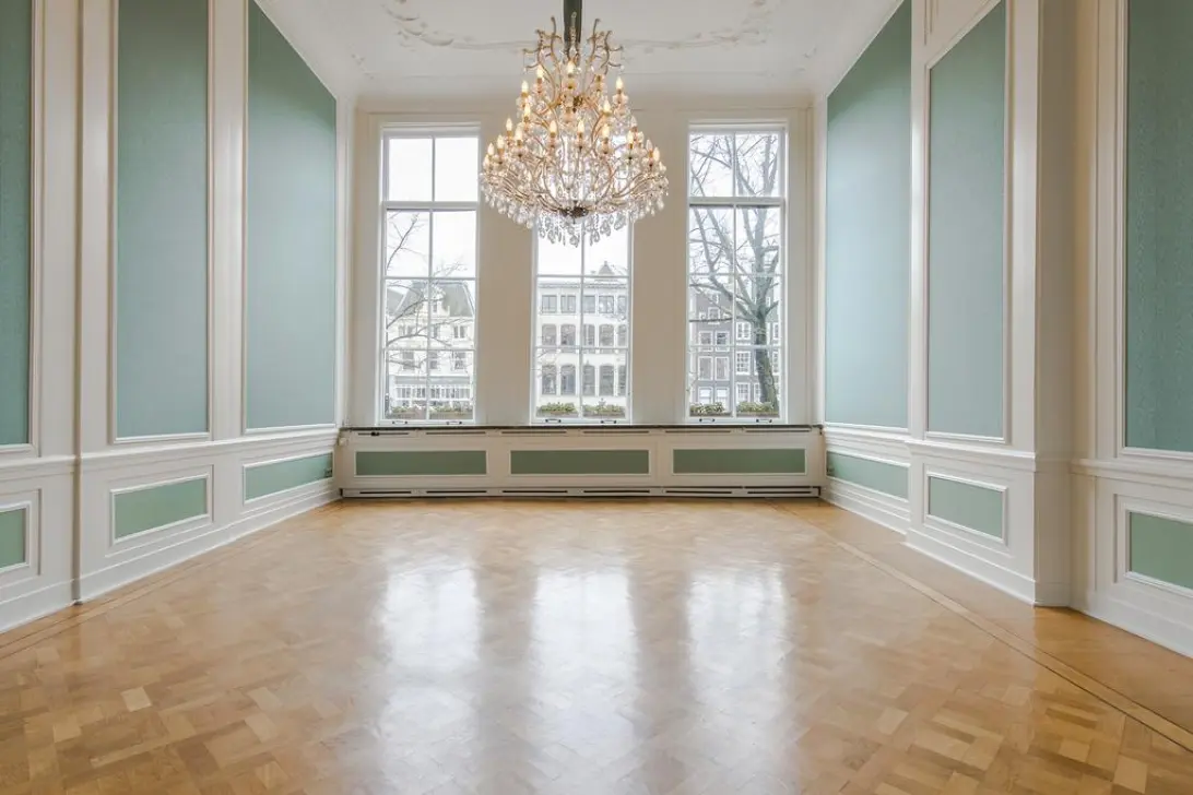 On the first floor at the front of the property is a spacious, bright double living room with approx. 5 meter high ceilings and three tall windows offering great views of the canal. At the back of this floor is the second bedroom with an ensuite bathroom and an open aspect view of the gardens of the Keizersgracht and Herengracht canal houses.