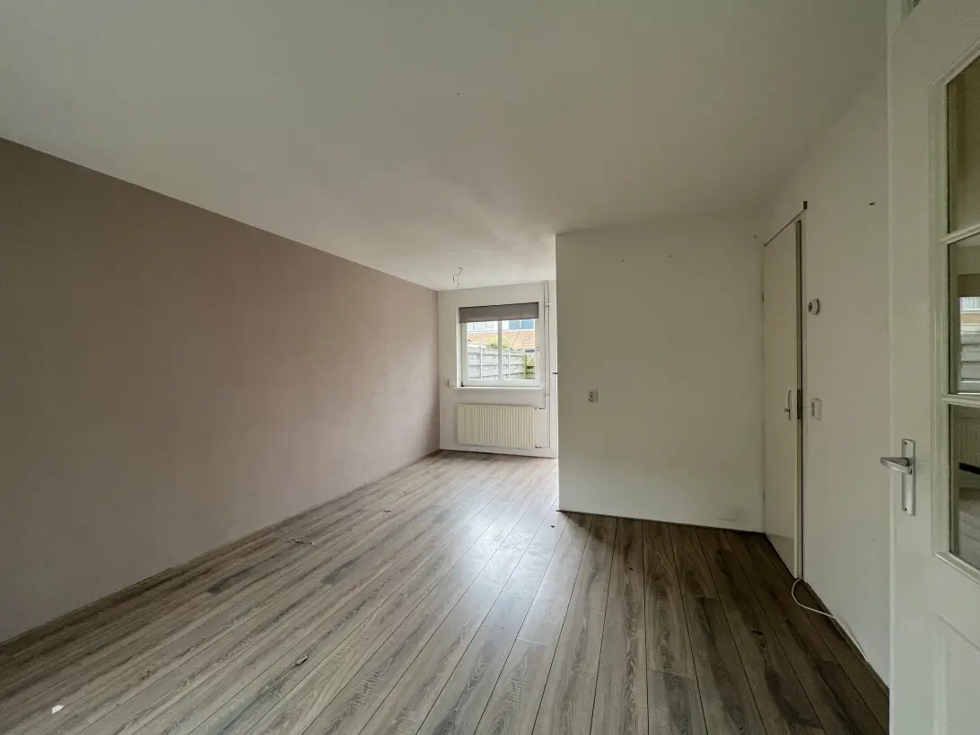 De doorzonwoonkamer van circa 21 m² is voorzien van een half open keuken en biedt toegang tot de achtertuin. De keuken is uitgerust met een vaatwasser, koel/vriescombinatie, een 4-pits gasfornuis en een combi-oven.
