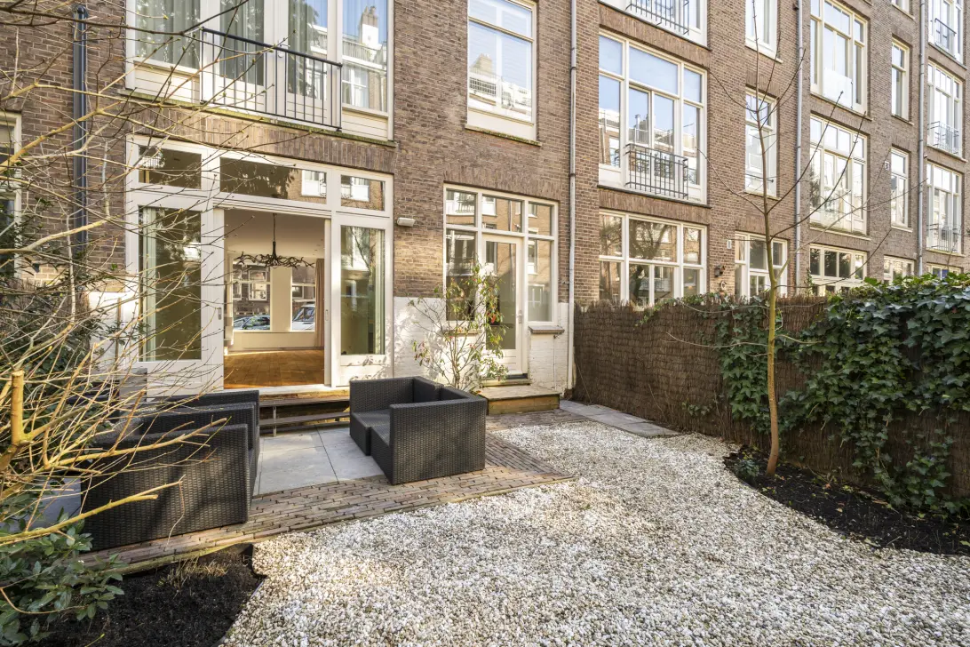 Fantastically maintained semi-detached ground-floor apartment with a garden, recently fully painted and furnished, and equipped with air conditioning. This apartment offers everything that makes city center living so appealing: high ceilings, stylish materials, a modern kitchen and bathroom, and a large laundry and storage room in the basement. Enjoy hassle-free living in one of the leafiest streets of Oud Zuid, with shops, parks, and public transport nearby. The apartment features a spacious kitchen with integrated appliances, a luxurious bathroom with a walk-in shower and bathtub, and air conditioning in all main rooms. French doors extend the cozy living room (equipped with a fireplace) into the garden with its spacious terrace. The apartment is offered unfurnished, with recently maintained walls and floors. Available immediately!