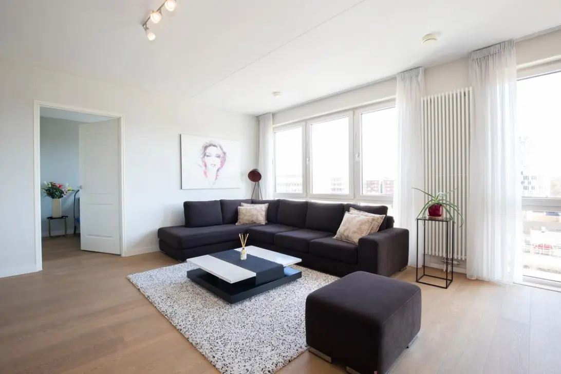 A beautiful 3-bedroom apartment of about 109 m2 surface area with panoramic views over Amsterdam, sunny spacious balcony/terrace and private parking.