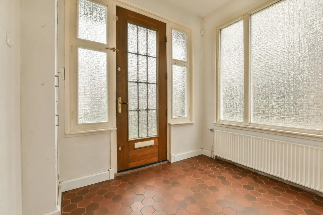 Entrance, spacious tour portal with wardrobe option. Beautiful spacious vestibule with stained glass windows and access to the various rooms, including a wall closet with fountain, access to the living room and kitchen. Spacious sun room that is fully equipped with a beautiful wooden floor and sliding doors to the backyard.
