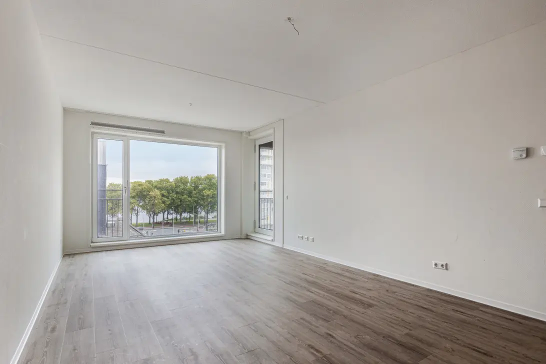 Dit fijne appartement, met een lichte woonkamer en open keuken geeft jou alle mogelijkheden om deze helemaal naar jouw smaak in te richten. Het appartement is voorzien van een moderne open keuken van Bruynzeel, uitgevoerd in wit met moderne accenten. De keuken is van hoogwaardige kwaliteit, CO2-neutraal geproduceerd en uitgerust met luxe Siemens inbouwapparatuur. Waaronder een inductiekookplaat, combimagnetron, vaatwasser en koelkast met vriesvak. Vanuit de woon- en slaapkamer heb je toegang tot een zonnige loggia (circa 4,8 m²) met uitzicht op de Sloterplas, ideaal om het buitenleven naar binnen te halen.
