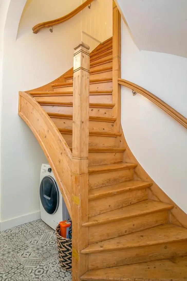 Begane grond: voordeur, hal met meterkast, trapkast, wasmachine aansluiting onder de trap, ruim toilet met fontein en CV-kast. Riante en uitgebouwde woonkamer met hoge plafonds, luxe open keuken met RVS fornuis (90 cm). Aan de achterzijde een grote lichtstraat en openslaande deuren naar de tuin. Stadstuin op het westen.