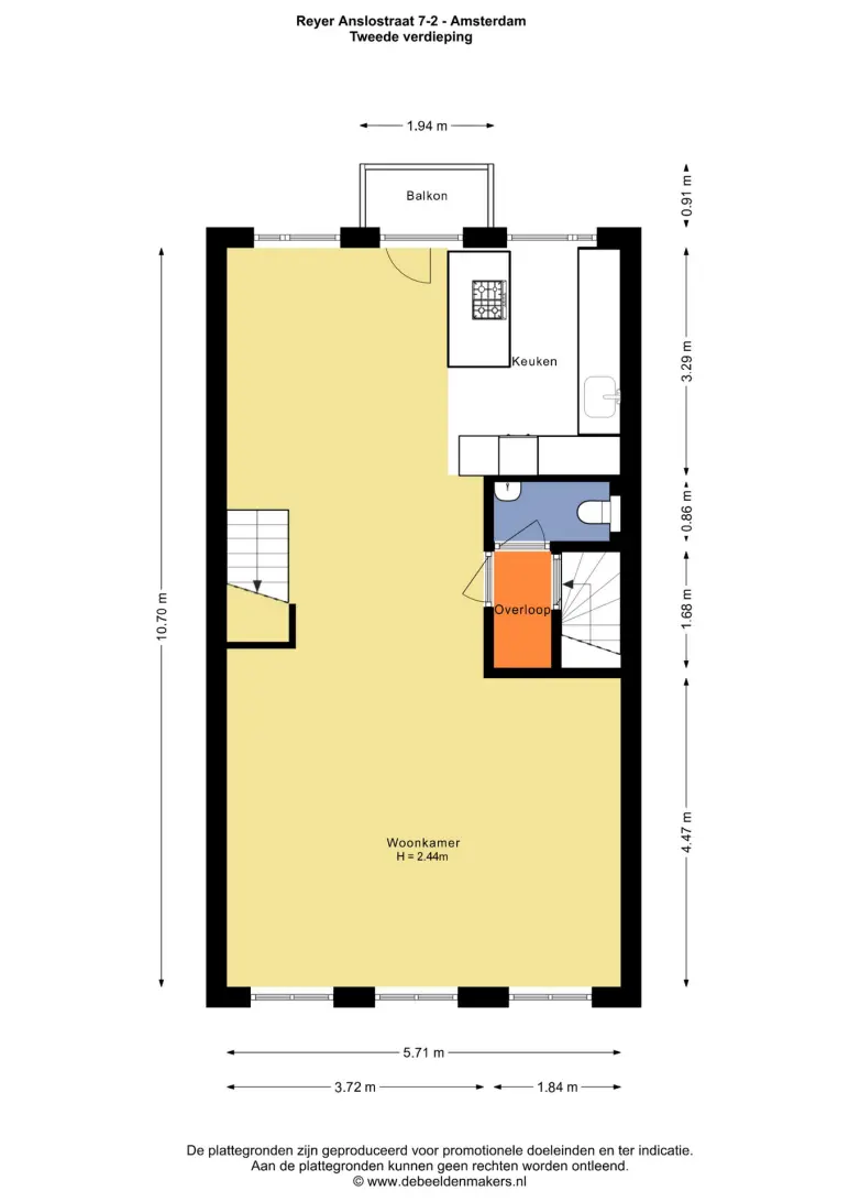 Ruim en licht 3-kamer dubbel bovenhuis aan de Reyer Anslostraat 7-2 te Amsterdam. Per direct beschikbaar.