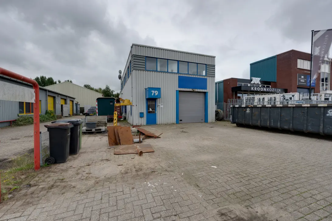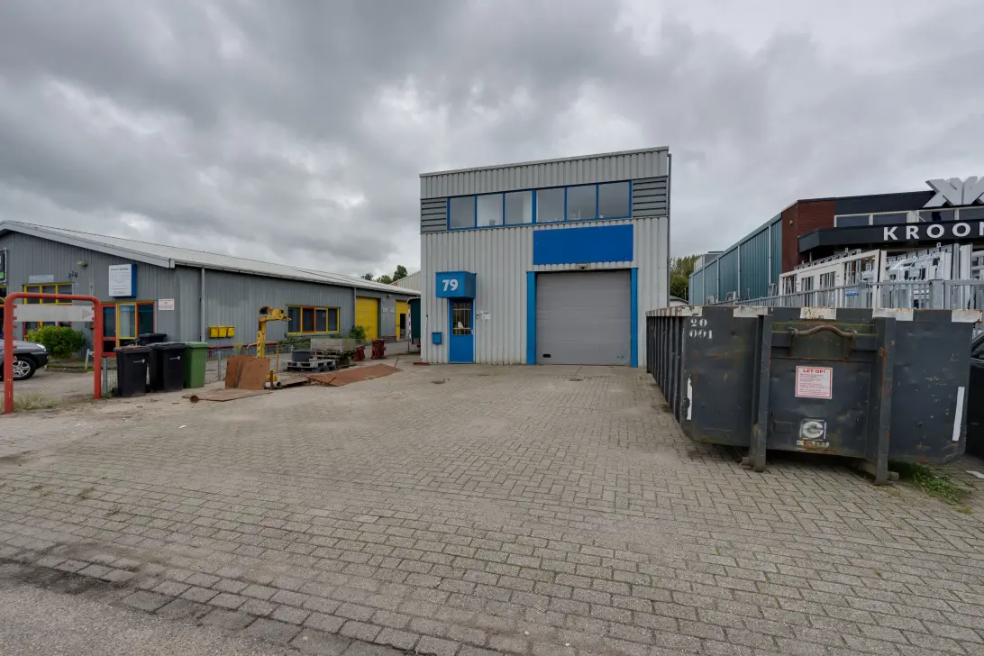 Overheaddeur elektrisch bedienbaar en loopdeur naar de hal welke toegang biedt aan de bovenwoning. Wanneer we de overheaddeur openen dan treft u een riante bedrijfsruimte met diverse voorzieningen zoals een een brug en speciale voorziening in de vloer. Verder is er een toilet en een pantry. Het terrein rond het pand omvat ca. 235 m2 eigen grond. Op de eigen grond bij het pand is ruimte voor het parkeren van ca. 5 á 6 personenauto's.