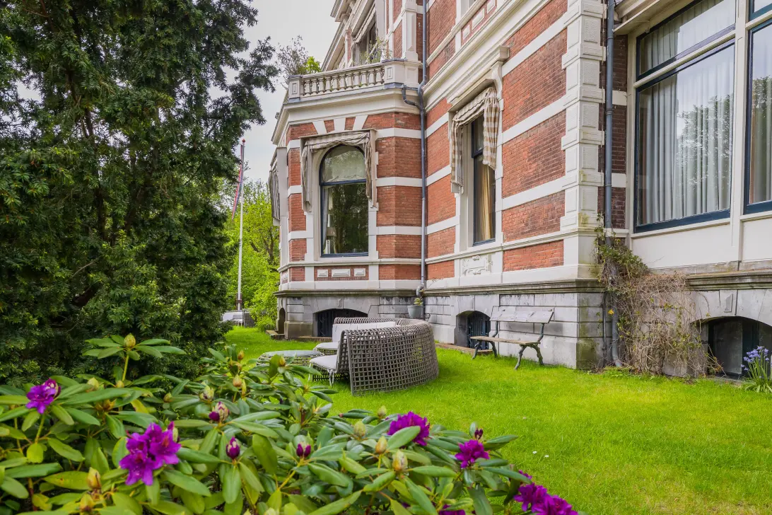 Deze zeer karakteristieke vrijstaande stadsvilla is gelegen op een werkelijk unieke locatie in het Florapark.