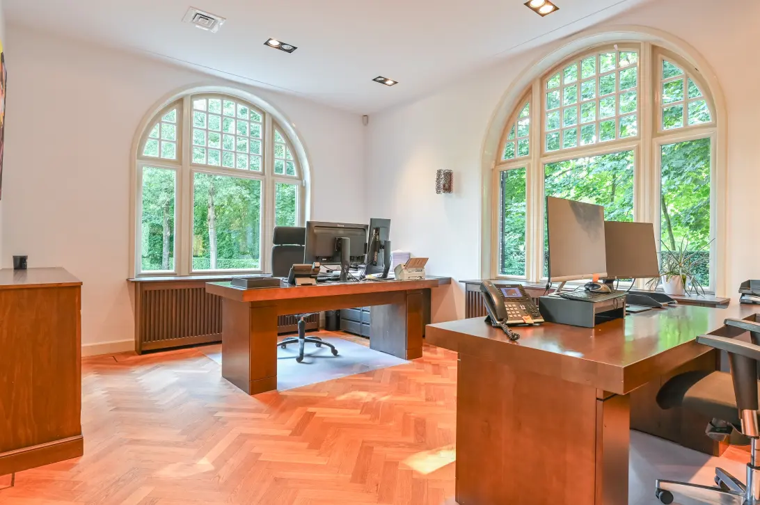 * Groot vloeroppervlakte, meerdere royale werkruimtes die met elkaar in verbinding staan door ensuite deuren en glazen wanden. Liever een andere indeling? Met lkleine ingrepen eenvoudig aan te passen.
