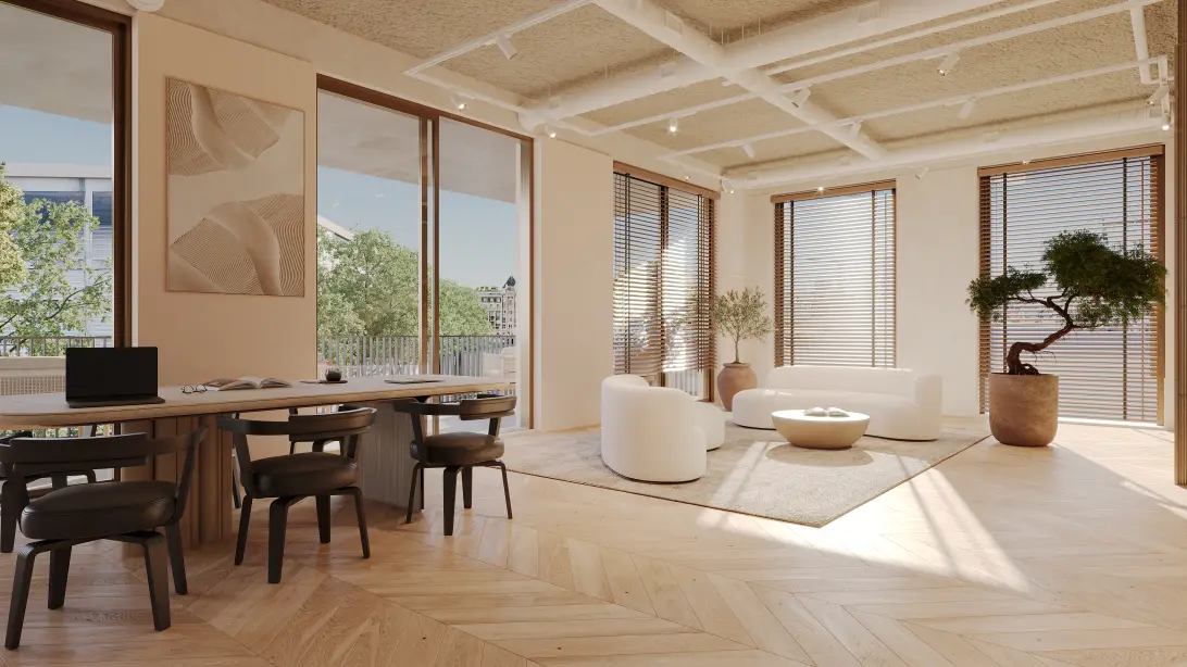 De laatste twee kantoorverdiepingen, samen totaal 514 m² VVO, zijn nog voor de verkoop beschikbaar. Dit betreft de eerste en tweede verdieping welke intern met elkaar zijn verbonden. Beide verdiepingen krijgen een plafondhoogte van circa 3 meter. De eerste verdieping wordt voorzien van een Frans balkon aan drie zijdes. De tweede verdieping wordt voorzien van een groot terras aan de voorzijde met zicht over ‘t IJ.