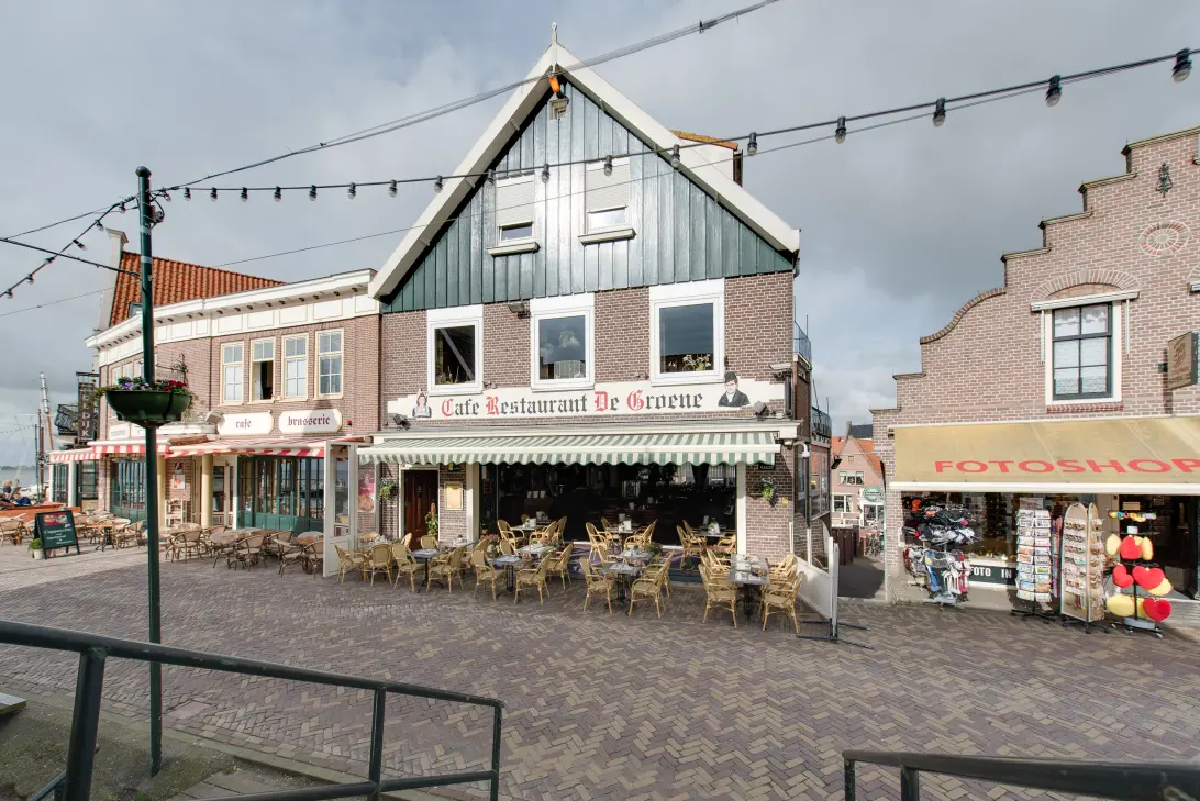 Op dijkniveau een zeer riant restaurant van circa 170 m² met een pui aan de toeristische Haven en uitzicht over de Haven van Volendam.