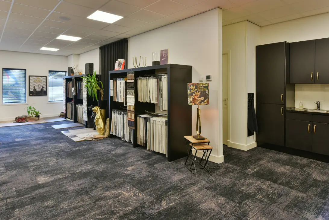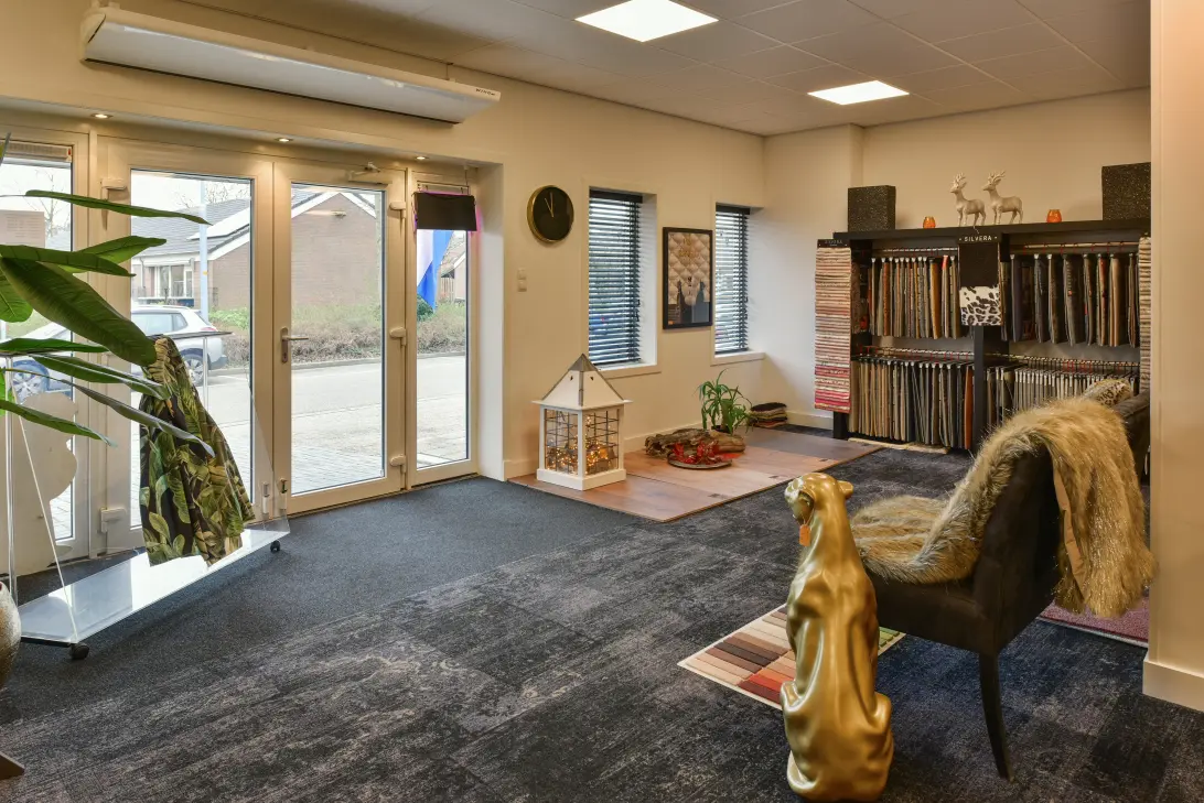 De huidige bedrijfsruimte heeft een breedte van bijna 10 meter en een diepte van 12 meter en is thans in gebruik als winkel/ showroom met achterin een ruime opslag van circa 12 m2. Deze ruimte beschikt over een eigen verwarmingsinstallatie, een toiletruimte alsmede een nette keuken voorzien van inbouwapparatuur.