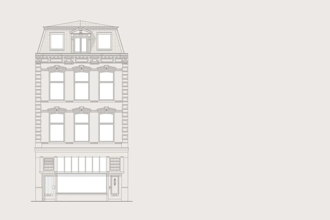 De woning – welke eveneens voorzien is van een eigen entree - is verdeeld over de eerste tot en met derde verdieping. Het is een sfeervol geheel waar wonen, koken en samenzijn op natuurlijke wijze samenkomen. De visgraat parketvloer, hoge plafonds en rijk gedetailleerde elementen zoals sierlijsten en een marmeren schouw zorgen voor een klassieke ambiance met eigentijdse allure.