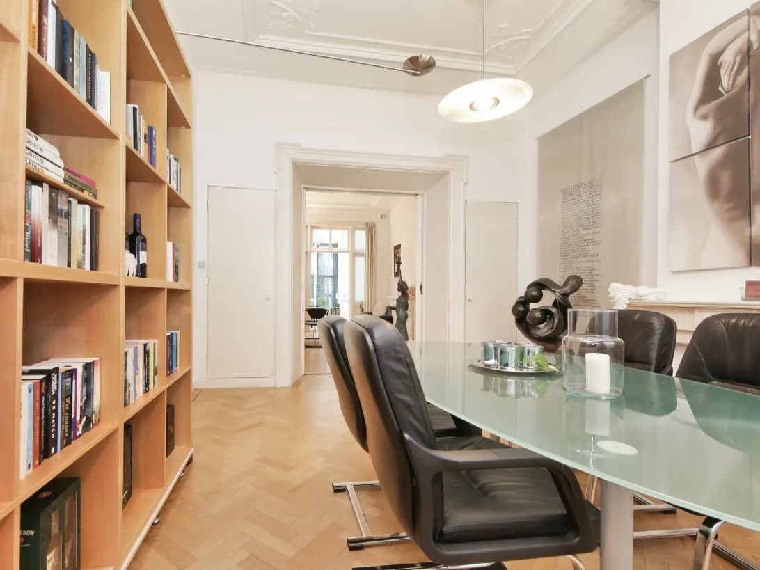 A double ground floor apartment in a stately mansion located on the well-known Koninginneweg in the heart of the chic Amsterdam Oud Zuid is offered for sale. This home is divided over three floors and offers the perfect combination of classic elegance and contemporary luxury.