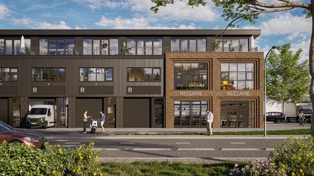 Kiest u voor een hoogwaardige, praktische en functionele hoekunit? Dan is type B de juiste keuze. Voorzien van een praktische overheaddeur en donker metselwerk, is dit een prachtige unit waarbij u beneden kunt gebruiken als opslag of magazijn, en boven een ruim kantoor kunt inrichten.