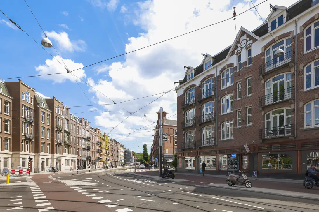 Dankzij de hoekligging en de hoge plafonds heeft de ruimte een open en lichte uitstraling met goede zichtbaarheid vanaf de straat. Een aantrekkelijke locatie voor ondernemers die zich willen vestigen op een levendige plek in het centrum van Amsterdam.