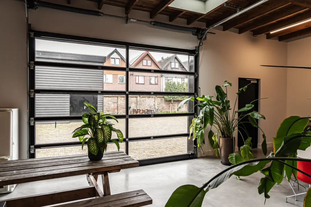 Bij binnenkomst vanaf ingang Lombokstraat 21 B aan de rechterkant, vind je een prachtig gerenoveerde bedrijfsruimte. Het gebouw is voorzien van een elektrische glazen Assa Abloy overheaddeur, een eigen meterkast en CV, toilet, dakkoepel en vloerverwarming. Verder is er een keuken aanwezig met spoeleiland, vaatwasser, koelkast en spoelbak met kraan.