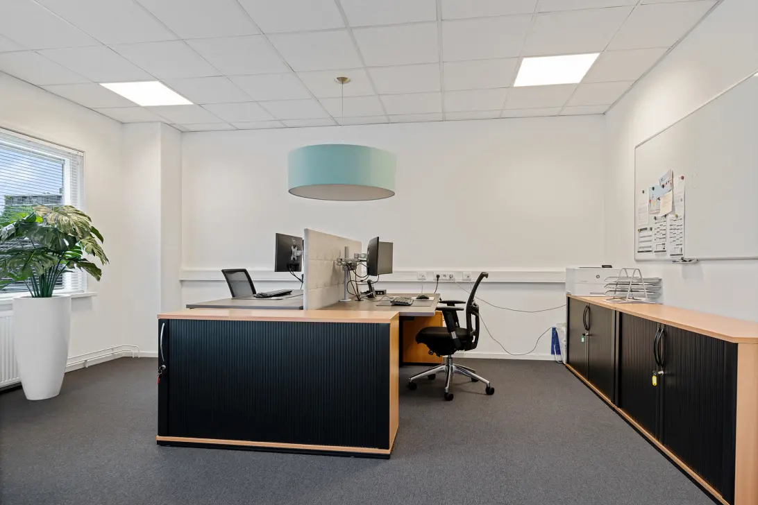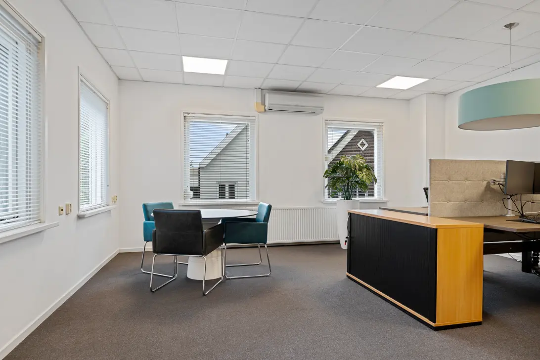Entree, hal, toilet, kantoorkamers, vergaderruimte, pantry, achter entree, ruimte met CV installatie.